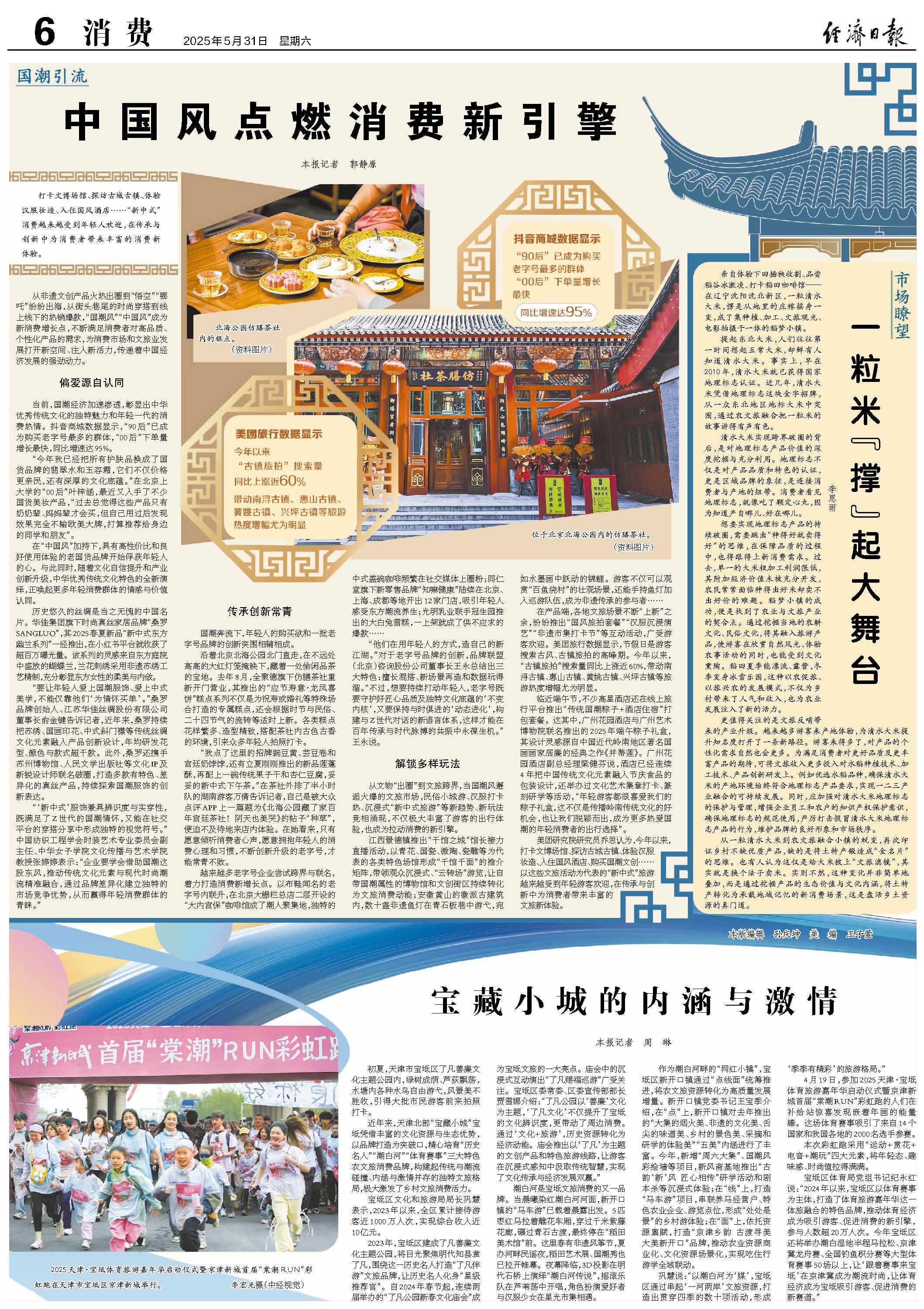 打卡文博场馆、探访古城古镇、体验汉服妆造、入住国风酒店……“新中式”消费越来越受到年轻人欢迎,在传承与创新中为消费者带来丰富的消费新体验。 从非遗文创产品火热出圈到“悟空”“哪吒”纷纷出海,从街头巷尾的时尚穿搭到线上线下的热销爆款,“国潮风”“中国风”成为新消费增长点,不断满足消费者对高品质、个性化产品的需求,为消费市场和文旅业发展打开新空间、注入新活力,传递着中国经济发展的强劲动力。 偏爱源自认同 当前,国潮经济加速渗透,彰显出中华优秀传统文化的独特魅力和年轻一代的消费热情。抖音商城数据显示,“90后”已成为购买老字号最多的群体,“00后”下单量增长最快,同比增速达95%。 “今年我已经把所有护肤品换成了国货品牌的翡翠水和玉容霜,它们不仅价格更亲民,还有深厚的文化底蕴。”在北京上大学的“00后”叶梓涵,最近又入手了不少国货美妆产品,“过去总觉得这些产品只有奶奶辈、妈妈辈才会买,但自己用过后发现效果完全不输欧美大牌,打算推荐给身边的同学和朋友”。 在“中国风”加持下,具有高性价比和良好使用体验的老国货品牌开始俘获年轻人的心。与此同时,随着文化自信提升和产业创新升级,中华优秀传统文化特色的全新演绎,正唤起更多年轻消费群体的情感与价值认同。 历史悠久的丝绸是当之无愧的中国名片。华佳集团旗下时尚真丝家居品牌“桑罗SANGLUO”,其2025春夏新品“新中式东方幽兰系列”一经推出,在小红书平台就收获了超百万曝光量。该系列的灵感来自东方庭院中盛放的蝴蝶兰,兰花刺绣采用非遗苏绣工艺精制,充分彰显东方女性的柔美与内敛。 “要让年轻人爱上国潮服饰、爱上中式美学,不能仅靠他们‘为情怀买单’。”桑罗品牌创始人、江苏华佳丝绸股份有限公司董事长俞金键告诉记者,近年来,桑罗持续把苏绣、国画印花、中式斜门襟等传统丝绸文化元素融入产品创新设计,年均研发花型、颜色与款式超千款。此外,桑罗还携手苏州博物馆、人民文学出版社等文化IP及新锐设计师联名破圈,打造多款有特色、差异化的真丝产品,持续探索国潮服饰的创新表达。 “‘新中式’服饰兼具辨识度与实穿性,既满足了Z世代的国潮情怀,又能在社交平台的穿搭分享中形成独特的视觉符号。”中国纺织工程学会时装艺术专业委员会副主任、中华女子学院文化传播与艺术学院教授张婷婷表示:“企业要学会借助国潮这股东风,推动传统文化元素与现代时尚潮流精准融合,通过品牌差异化建立独特的市场竞争优势,从而赢得年轻消费群体的青睐。” 传承创新常青 国潮奔流下,年轻人的购买欲和一批老字号品牌的创新突围相辅相成。 沿着北京北海公园北门直走,在不远处高高的大红灯笼掩映下,藏着一处偷闲品茶的宝地。去年8月,全聚德旗下仿膳茶社重新开门营业,其推出的“应节寿意·龙凤喜饼”糕点系列不仅是为祝寿或婚礼等特殊场合打造的专属糕点,还会根据时节与民俗、二十四节气的流转等适时上新。各类糕点花样繁多、造型精致,搭配茶社内古色古香的环境,引来众多年轻人拍照打卡。 “我点了这里的招牌豌豆黄、芸豆卷和宫廷奶饽饽,还有立夏刚刚推出的新品莲蓬酥,再配上一碗传统果子干和杏仁豆腐,妥妥的新中式下午茶。”在茶社外排了半小时队的湖南游客万倩告诉记者,自己是被大众点评APP上一篇题为《北海公园藏了家百年宫廷茶社!阴天也美哭》的帖子“种草”,便迫不及待地来店内体验。在她看来,只有愿意倾听消费者心声,愿意拥抱年轻人的消费心理和习惯,不断创新升级的老字号,才能常青不败。 越来越多老字号企业尝试跨界与联名,着力打造消费新增长点。以布鞋闻名的老字号内联升,在北京大栅栏总店二层开设的“大内宫保”咖啡馆成了潮人聚集地,独特的中式盖碗咖啡频繁在社交媒体上圈粉;同仁堂旗下新零售品牌“知嘛健康”陆续在北京、上海、成都等地开出12家门店,吸引年轻人感受东方潮流养生;光明乳业联手冠生园推出的大白兔雪糕,一上架就成了供不应求的爆款…… “他们在用年轻人的方式,造自己的新江湖。”对于老字号品牌的创新,品牌联盟(北京)咨询股份公司董事长王永总结出三大特色:擅长混搭、新场景再造和数据玩得溜。“不过,想要持续打动年轻人,老字号既要守护好匠心品质及独特文化底蕴的‘不变内核’,又要保持与时俱进的‘动态进化’,构建与Z世代对话的新语言体系,这样才能在百年传承与时代脉搏的共振中永葆生机。”王永说。 解锁多样玩法 从文物“出圈”到文旅跨界,当国潮风邂逅火爆的文旅市场,民俗小城游、汉服打卡热、沉浸式“新中式旅游”等新趋势、新玩法竞相涌现,不仅极大丰富了游客的出行体验,也成为拉动消费的新引擎。 江西景德镇推出“千馆之城”馆长接力直播活动,以青花、国瓷、微陶、瓷雕等为代表的各类特色场馆形成“千馆千面”的推介矩阵,带领观众沉浸式、“云转场”游览,让自带国潮属性的博物馆和文创街区持续转化为文旅消费动能;安徽黄山的徽派古建筑内,数十盏非遗鱼灯在青石板巷中游弋,宛如水墨画中跃动的锦鲤。游客不仅可以观赏“百鱼绕村”的壮观场景,还能手持鱼灯加入巡游队伍,成为非遗传承的参与者…… 在产品端,各地文旅场景不断“上新”之余,纷纷推出“国